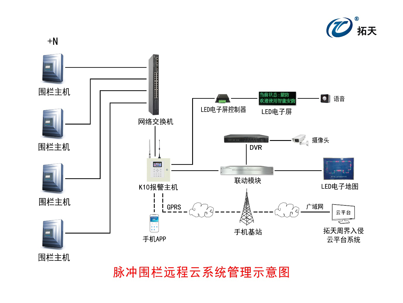 全面支持接入脈沖電子圍欄、張力電子圍欄、泄漏電纜、振動光纖、地址碼等周界報警設備,并實現集中統一管理。云平臺軟件可以連入多達幾百個GPRS報警主機